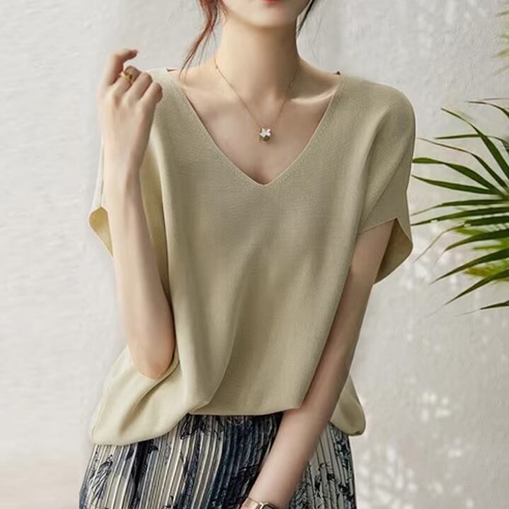 ・お顔周りをシャープに美しく見せてくれるVネック。