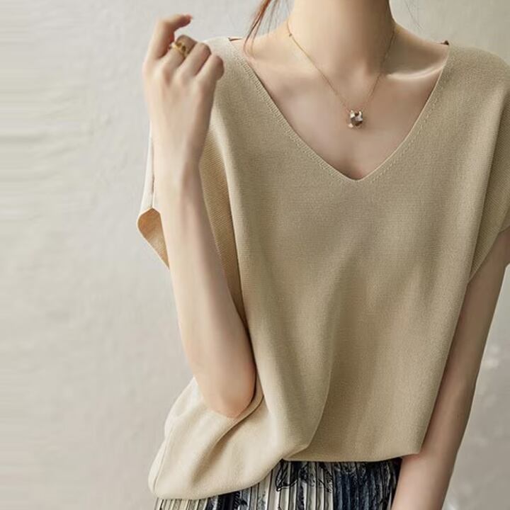 ・お顔周りをシャープに美しく見せてくれるVネック。