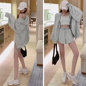 可愛い 部屋着セット 長袖 ルームウェア カジュアル ジップアップパーカー ショート丈キャミソール ショートパンツ 春夏